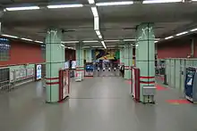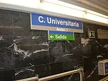 Ciudad Universitaria ([θjuˈðað uniβeɾsiˈtaɾja], "University City") is a station on Line 6 of the Madrid Metro, located beneath Complutense avenue in the Ciudad Universitaria ward in the Moncloa-Aravaca district in fare Zone A.[1] It is named after the Ciudad Universitaria, which is home to the Complutense University of Madrid, the Technical University of Madrid, and the National University of Distance Education. The station's platforms feature tilework representing the bear and the strawberry tree, which is a symbol of Madrid. The station is located next to the Ciudad Universitaria underground train storage depot, where most of Line 6's 5000 series trains are stored.