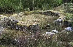 It is protected by three lines of stone walls, with an average width of 1.5m.[1] The Cividade's cemetery was located within the residential section of the Cividade.[1] The houses were of circular and oval shape, made of stone walls and ceilings of perishable materials.[2] The houses were typically arranged around a central patio with a cistern or fountain.[2]