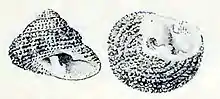 Drawing showing two views of a shell of Clanculus floridus