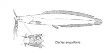 Clarias anguillaris is a species of African airbreathing catfish also known as the mudfish. This species is of minor importance in commercial fisheries. It grows to a length of 100 cm (39.4 inches) TL.