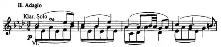 2. Adagio (in A major and modified sonata form without development; only the solo clarinet, violins, and cellos play in this movement, with all other instruments tacet)