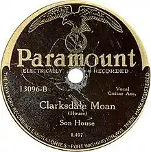 "Clarksdale Moan" is a blues song recorded by the Delta blues musician Son House and first released as a 78-RPM single in 1930.[1] The equally sought-after recording "Mississippi County Farm Blues" was the A-side.[1] The song remained unheard until 2005, when an anonymous record collector discovered an original 78-RPM disc in decent condition. It was released in 2006 on the Yazoo Records album The Stuff That Dreams Are Made Of, which contained many other rare blues recordings from that era.