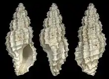 Shells of † Clathromangelia quadrillum (museum specimens at MNHN, Paris)