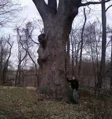 - ↑ Photograph showing the dead stump of the Clement Oak