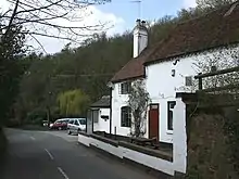 The hills along with the Lickey Hills form a range of hills in north Worcestershire known as the Clent-Lickey range (or the Clent-Lickey ridge).[10][11] The largest of the Clent Hills is Walton Hill which is 1,037 feet (316 m) high followed by Clent Hill at 1,014 feet (309 m). They are separated by a valley known as St. Kenelm's Pass, which starts as an escarpment one side of which along with the sides of the two hills falls away towards Uffmoor Wood; water flowing down this slope enters streams which become the River Stour. Close to the top of the escarpment, but just on the other side, stands High Harcourt Farm (which belongs to the National Trust,[12] but its farm land is not open to the public). Below the farm the escarpment falls away and becomes a sharp V valley in which a stream flows down into Clent village. Where the valley sides are at their steepest the Walton Hill side of the valley is known as Clatterbach. In the past, before steam power replaced water power, the stream in the valley was dammed at regular intervals to provide power for watermills. The remains of one such dam can be seen behind the Vine Inn in Clent which was once a mill.[13]