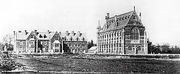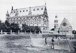 Hansom was called back in the 1870s and asked to design what is now the Percival Library and the open-cloister classrooms. This project was largely completed by 1875 – although the Wilson Tower was not built until 1890 (grade II listed[15]). Other buildings were added as follows: