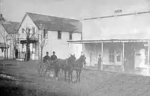 Cloverdale began as an early stagecoach stop, known as Markleville, on the Rancho Rincon de Musalacon Mexican grant. In 1856, R.B. Markle and W.J. Miller bought 759 acres (3.1 km2), which included the present site of the town, from Johnson Horrell. In 1859, James Abram Kleiser bought Markle's interest, and the town was laid out. The town was incorporated when the San Francisco and North Pacific Railroad arrived in 1872. By 1878, the railroad service provided three trains a day between Cloverdale and Ferries of San Francisco Bay.[5]
