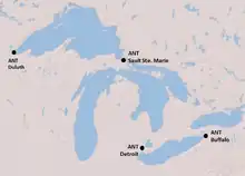 - ANT Sault Sainte Marie is located in Sault Sainte Marie, MI and services buoys, lighthouses, and markers from Munising, MI east to Drummond Island, MI with the primary operating area on the St. Mary's River system.[90]