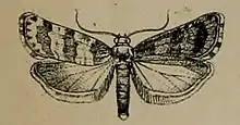 The wingspan is 13–17 mm. Adults are on wing from May to June.