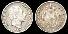 10 centimos | 18 mm | 2.6 g | 90% silver (83.5% after 1881) |