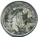 - ↑ All of these coins bore a single reverse design, the federal shield surmounted by an American eagle clutching an olive branch in its right claw and a bundle of arrows in its left. Around this appeared the legend UNITED STATES OF AMERICA and the date of coinage. The obverse of the minor coins (the half centavo and one centavo, both coined in bronze, and the copper-nickel five centavos) featured the semi-nude figure of an adolescent native, seated at an anvil and holding a hammer in his right hand. In the distance is seen the smoking volcano of Mt. Mayon, located on the main island of Luzon. The statement of value appears above him in English, while the name of the archipelago is written below in Spanish as FILIPINAS. This employment of Spanish is curious, given the islands’ recent history, yet it remained for some years afterward the principal language of the educated class. For the silver coins (ten, twenty and fifty centavos, plus the one-peso piece), the standing figure of an adolescent female was utilized. She is clad in a long, flowing gown and holds in her right hand a hammer, resting atop an anvil, as seen on the minor coins. Behind her is again Mt. Mayon, an almost perfectly conical volcanic mountain southeast of the capital city of Manila. These designs are credited to Filipino sculptor Melecio Figueroa, who lived just long enough to see his coins enter circulation.