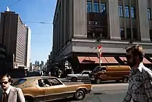 College Park in 1979. A sign on the building informing pedestrians of redevelopment works in the building.