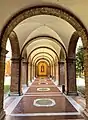 "Collegio Sant'Anselmo" has maintained a vault at the Campo Verano Cemetery beside the Basilica of St. Lawrence for burials of those affiliated with Sant'Anselmo who may have died while in Rome. The vault is located in II Quadriportico, section four, on the front row facing section three. The following have been buried in the vault (see gallery photo):