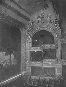 The Columbia Amusement Company opened the Columbia Theatre on January 10, 1910.[1] The opening was well publicized and was attended by various dignitaries.[5] The opening was also attended by actors and managers from the worlds of vaudeville and legitimate theater.[6] The Columbia Circuit was a leader in offering clean burlesque, family-style entertainment that resembled vaudeville.[7] The main difference was that burlesque shows had an overall theme, a carry-over from the old minstrel show format, while vaudeville was a series of unconnected individual acts.[8]