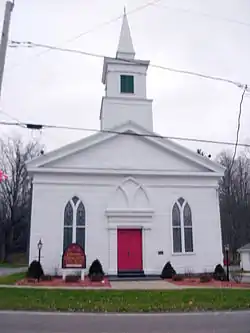 Columbus Community Church is a historic church on New York State Route 80 in Columbus, Chenango County, New York. It was built in 1844 and is a one-story rectangular frame building, a low pitched gable roof, and a three-stage bell tower and spire. It is in the Greek Revival style, with some Gothic Revival features introduced with a remodeling in 1879.[2]