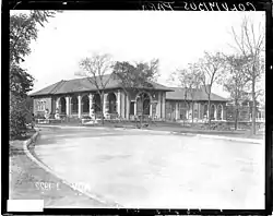 The park was largely completed by 1920, when Jensen was removed from his position by Illinois Governor Frank Lowden. The only uncompleted section was the refectory and boathouse. The new West Park Commissioners ignored Jensen's plan and instead hired local architectural firm Chatten & Hammond, who completed the structure in 1923. Although a contradiction to the rest of the park, the refectory was well received. Works Progress Administration funds in the late 1930s allowed for the conversion of an old stable building into a gymnasium. The funds also allowed for the replanting of the landscape. In 1953, the southern 9 acres (3.6 ha) of Columbus Park were demolished to make way for the Eisenhower Expressway. The waterfalls and surrounding landscape were restored in 1991; the refectory was restored a few years later. The park was listed on the National Register of Historic Places on May 20, 1991, and designated a National Historic Landmark on July 31, 2003.[2] It is considered one of "150 great places in Illinois" by the American Institute of Architects.[3]