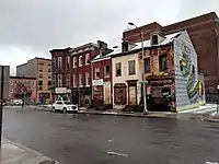 During the 1920s, Lithuanian Hall in the Hollins Market neighborhood was used as a venue for speeches by prominent members of the Communist Party USA, such as William Z. Foster and Juliet Stuart Poyntz. On October 13, 1929, a Jewish branch of the CPUSA hosted a speech by Sol Hurwitz, the editor of the Jewish Daily Forward, and the speech was interrupted by a mob of anti-Communists. The Communists inside of the hall defended themselves with chairs until the police arrived to disperse the mob.[1]