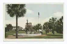 St. James Park in downtown Jacksonville was renamed Hemming Park in 1899 in honor of Civil War veteran Charles C. Hemming, after he installed the 62-foot (19 m)-tall Confederate monument in the park in 1898.[2] Hemming was born in Jacksonville. He later moved to Colorado Springs, Colorado and became a banker, making a fortune.[3] The memorial is the oldest in the city and was the tallest at the time.[4] An occurrence in February 1896 brought lasting change to St. James Park. At the state reunion of United Confederate Veterans (UCV) in Ocala, Charles C. Hemming announced his plan to erect a memorial in honor of Florida's Confederate soldiers.