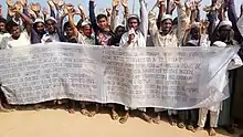 Starting on 6 September, reports emerged that the Myanmar Army had begun laying landmines near the border with Bangladesh.[125] Bangladesh said it had photographic evidence of Myanmar laying mines,[126] and lodged an official complaint.[125] On 10 September, Amnesty International accused Myanmar's security forces of laying landmines in violation of the landmine ban under international law,[127] an accusation Myanmar's government denied. The purpose of Myanmar laying mines is believed to be to prevent the Rohingya refugees from returning.[126] At least three people, including two children, had been injured in landmines as of 10 September.[108][127] Mro people crossing the border into Myanmar have also been injured by the mines.[128]