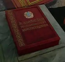 The Constitution of the Republic of Kazakhstan (Kazakh: Қазақстан Республикасының Конституциясы, romanized: Qazaqstan Respublikasynyñ Konstitutsiasy, Russian: Конституция Казахстана, romanized: Konstitutsiya Kazakhstana) is the highest law of Kazakhstan, as stated in Article 4. The Constitution was approved by referendum on 30 August 1995.[1] This date has since been adopted as the "Constitution Day of the Republic of Kazakhstan".[1]
