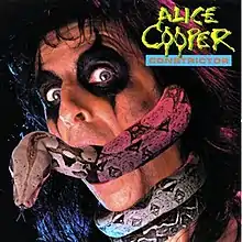 Constrictor is the ninth solo studio album by American rock musician Alice Cooper, released in October 1986 by MCA Records.[4] After a hiatus from the music industry after the release of DaDa (1983), Cooper remained in seclusion for three years. He starred in Monster Dog (1986), a horror film for which he wrote two songs. He also guest starred on the Twisted Sister track "Be Chrool to Your Scuel". Constrictor was Alice Cooper's first studio album to feature Kane Roberts on guitar, Kip Winger, who would later gain fame with his own band, Winger, on bass guitar, and the only one to feature David Rosenberg on drums. Winger has since pointed out that his last name was erroneously spelt in the album credits as Wringer.[5]