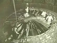 Since construction began on the Minnesota Capitol in 1896, hundreds of workers helped complete the statehouse in 1907. While names of the Capitol Commissioners, and architect Cass Gilbert and his associates were cast on a bronze plate, the building's craftsmanship was done by workers who have largely been forgotten. This mainly-immigrant workforce used hand tools with skills generally not practiced by 21st-century construction workers.[15] A labor strike in January 1902 interrupted work on the Capitol. Stonemasons struck for ten weeks to protest the presence of a non-union blacksmith.[16]: 5 The commission said soliciting and then rejecting all bids from contractors may create for itself a reputation that would lead to fewer applicants. For this reason, the commission signed several contracts that were somewhat higher than estimated, including those for metal-furring and lathing, plastering, and ornamental ironwork.[16]: 5–6