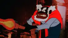 Coonskin uses a variety of racist caricatures from blackface minstrelsy and darky iconography, including stereotypes featured in Hollywood films and cartoons.[4] In the book That's Blaxploitation! Roots of the Baadasssss 'Tude (Rated X by an All-Whyte Jury), Darius James writes that "Bakshi pukes the iconographic bile of a racist culture back in its stupid, bloated face, wipes his chin and smiles Dirty Harry style. [...] He subverts the context of Hollywood's entire catalogue of racist black iconography through a series of swift cross-edits of original and appropriated footage."[4] The film also features equally exaggerated portrayals of white Southerners, Italians, and homosexuals.[4] The depiction of Jewish characters stems from stereotypes portrayed in Nazi propaganda, including The Eternal Jew.[8]
