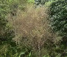 The shrub flowers in early spring and produces black/red fruit that ripen between February and June.[1]