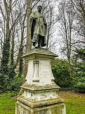His Grade II listed statue stands in the gas employees' war memorial garden in Twelvetrees Crescent.[3] Originally it was erected at Beckton Gas Works before 1926; it was moved to its present location in a garden at Twelvetrees Crescent, Bromley by Bow, near Bromley Gas Works, north of the London Gas Museum (closed in 1998), and close to a war memorial to employees of the Gas Light and Coke Company.