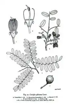 The tree was first described from Portuguese East Africa by the Jesuit priest João de Loureiro (1710-1791), who spent time as a missionary in Goa, Macao and Cochin China, but was also a naturalist and mathematician. There are 8 species of Cordyla currently recognised, confined to the eastern parts of Africa and the island of Madagascar.