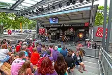 The museum offers several live glassmaking[32] demonstrations. The Hot Glass Show is a demonstration where one of the museum's glass blowers provides a live glass-blowing demonstration, which is also narrated by another of the glass blowers. The Hot Glass Show is performed at the museum, on the road, and at sea on three Celebrity Cruise ships.