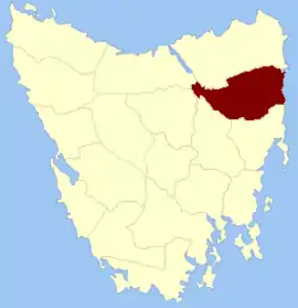 It is bordered to the north by the North Esk River, and to the south by the South Esk River. While most of Launceston is in it, it does not include suburbs to the north of the North Esk such as Mayfield which is in Dorset; and suburbs to the west of the South Esk such as Trevallyn, which is in Devon. It goes east to the Tasman Sea, including St Helens and St Marys.