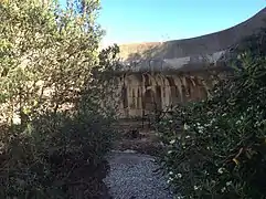 In World War II, the Corradino Lines were temporarily reestablished as an infantry entrenchment, and a defensive post containing a QF 4 inch Mk V naval gun turret was built.[10]