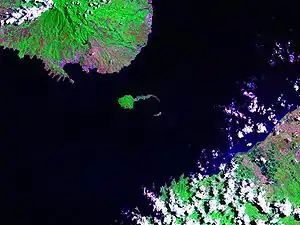 Despite being located nearer to the southern coast of Bataan, Corregidor and the other fortified islands of Manila Bay fall under the jurisdiction of the City of Cavite.[1][3][4] Corregidor, also known as "The Rock" for its rocky landscape and the heavy fortifications, along with Caballo Island, about 1.7 km (1.1 mi) south, divide the entrance of Manila Bay into the North and South Channel.