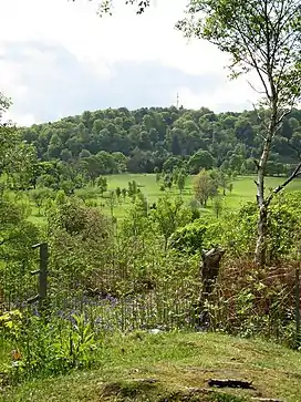 The hill is a prominent feature of Edinburgh’s skyline. It appears as a long, low, L-shaped ridge, extending about 2.4 kilometres (1.5 miles) in length from north to south and rising to 161 metres (528 feet). The upper slopes, which are heavily wooded, form a local nature reserve (LNR), managed by the City of Edinburgh Forestry and Natural Heritage Service and the Friends of Corstorphine Hill. It is the largest urban woodland in the city.[2][3]