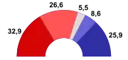 The 1933 elections, already held under the new legislation, gave rise to a parliamentary change and a chamber with the right-wing CEDA as the largest parliamentary group.[9] Opened on 8 December 1933, the new Cortes provisionally elected the radical Santiago Alba as president of the chamber.[10] In November 1934, the change in the regulations of the Cortes was approved.[11]