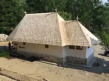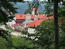 ![]() View of Bistrița village, with Bistrița Monastery in the foreground | |