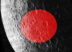 ![]() Oblique Lunar Orbiter 5 image, with the approximate extent of the basin highlighted in red | |