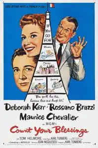 Count Your Blessings is a 1959 American romantic comedy drama film released by Metro-Goldwyn-Mayer. It was directed by Jean Negulesco, written and produced by Karl Tunberg, based on the 1951 novel The Blessing by Nancy Mitford. The music score was by Franz Waxman and the cinematography by George J. Folsey and Milton R. Krasner. The costume design was by Helen Rose.