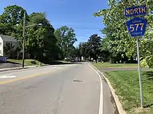 View north along former CR 509 Spur (now signed as CR 577) at Hillside Avenue (CR 634) in Springfield