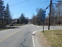County Route 560 (abbreviated CR 560 and locally known as Tuttles Corner Road) is a county highway in the U.S. state of New Jersey. The highway extends 5.05 miles (8.13 km) from U.S. Route 206 and County Route 521 in Sandyston Township. CR 560 ends at the Pennsylvania state line, where it becomes Pike County Quadrant Route 2019, which connects to Pennsylvania Route 739. CR 560's entire length is in Sandyston. However, CR 560 does pass through the hamlet of Layton.