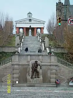 The Court House Hill–Downtown Historic District is a national historic district located in Lynchburg, Virginia. The area is situated on a promontory overlooking the Lower Basin Historic District on the south bank of the James River. The approximately 50-acre (200,000 m2) district is composed of relatively intact city blocks of religious, commercial, residential, and governmental buildings and structures ranging in date from the early 19th century to the mid-20th century. Buildings in the district represent a variety of styles from the different periods, including the Federal, Greek Revival, Gothic Revival, Italianate, Queen Anne, Neoclassical, Italian Renaissance, Spanish Eclectic, Craftsman, and Art Deco styles.[2]