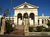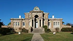The Darlinghurst Court House and residence is the finest, and only erudite Old Colonial Grecian public building complex surviving in Australia. Commenced in the 1830s, it has a long and continual association with the provision of law and order along with the neighbouring Darlinghurst Gaol complex. The imposing sandstone building is prominently sited at Taylor Square. The Court House, designed by Lewis and built between 1837 and 1844, is the first purpose designed court house to be built in NSW. The pavilions on either side were designed by Barnet around 1886. The extension facing Victoria Street was designed by the Government Architect's Office and completed c.1963. The central block was adapted from an 1823 design in Peter Nicholson's 'The New Practical Builder'.[25][26][27][28]