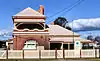 LocalOriginal building originally L-shape with front projecting out. Attractive Victorian style public building with hipped corrugated iron roof and brick chimneys. Local brick stone sills. Concave verandah on side with thick, stop chamfered posts. No verandah on projecting front façade. Instead has three tall arched windows symmetrically places. This façade dominates. Upper pane mullions follow arched shape. Large carved brackets on eaves soffit. Otherwise detailing is limited. Extended both sides in around the early 1900s with further, more recent extension forming north wing. The police barracks were converted, replacing a previous 1836 courthouse. It has been much added to since but remains the oldest courthouse outside Sydney still in use.[31][32]