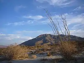 ![]() Coyote Mountain with an Ocotillo in the foreground. | |
