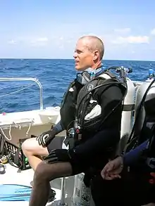 In October 2004, McKinley, a recreational diver,[8] became an aquanaut through his participation in the joint NASA-NOAA, NEEMO 7 (NASA Extreme Environment Mission Operations) project, an exploration research mission held in Aquarius, the world's only undersea research laboratory.[3][9][10] McKinley was the Canadian Space Agency's co-principal investigator for NEEMO 7, along with Mehran Anvari.[11] During the mission, McKinley wrote: "It is difficult to explain what it is like living in an underwater habitat... when something passes by our windows, it is not a bird but rather a fish. And when we leave our home, we don't go for a walk but rather a swim. It must be as strange for the fish as it is for us!"[12]