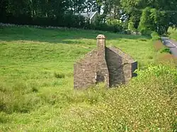 A ruined Curling house still stands below the old manse at the site of an old lochan in 1832[2] that was used as a curling pond with a brick dam added. It was a brick built rectangular building with a single fireplace and a corrugated iron roof.[27] The dam and building were created in 1853. In 1902 the Tarbolton Curling Club played the Craigie Curling Club at Craigie and won by 74 to 64.[28] Writing in 1926 a local recalled that when ice formed on the lochan the farmers, minister, teacher and neighbours all came to curl and the day's labour was forgotten.[8]