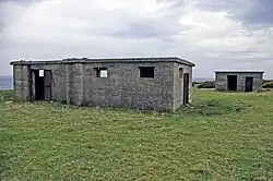 Two buildings remain on the site, the former transmit/receive block (TxRx) and the standby set house. The standby set house was used to provide emergency power to the TxRx block in case of electricity supply issues. The buildings are now maintained by the National Trust and are recorded as 10355 / MNA124708.[12] Both buildings are 3 metres (9.8 ft) high and the site is listed as grade II with Historic England.[13] The TxRx building was a set design, measuring 50 feet (15 m) by 18 feet (5.5 m) upon which was mounted an aerial which could turn continuously.[14] The footprint of the radar base including the TxRx, standby set house and accommodation buildings, covered an area of 230 metres (750 ft) by 170 metres (560 ft).[15]