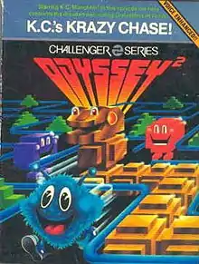 Crazy Chase is cartridge number 44 in the official Philips line of games for the Philips Videopac. The North American version for the Magnavox Odyssey² was called K.C.'s Krazy Chase!, an inside reference to then president of Philips Consumer Electronics Kenneth C. Menkin.[1] It is a sequel to K.C. Munchkin!.