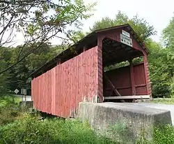 The Creasyville Covered Bridge is a historic wooden covered bridge located at Jackson Township and Pine Township in Columbia County, Pennsylvania, United States. It is a 44.5-foot-long (13.6 m), Queen Post Truss bridge over Little Fishing Creek constructed in 1881. It is one of 28 historic covered bridges in Columbia and Montour Counties.[2]